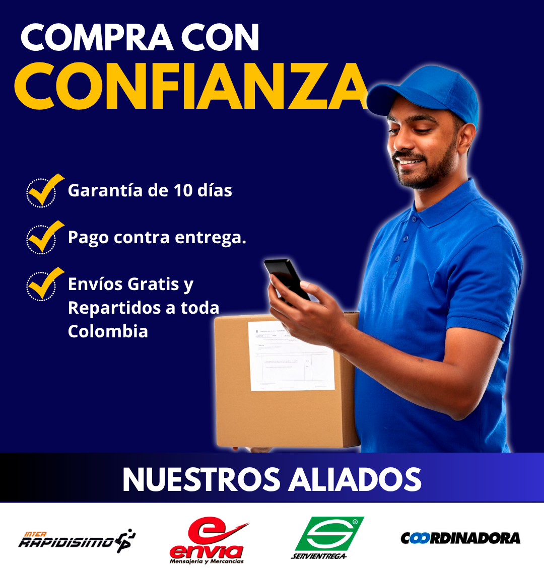 Sí, ofrecemos ENVÍO GRATIS a todo el país y el servicio de PAGO CONTRA ENTREGA en Colombia. Solo paga el valor del producto cuando lo reciba en su domicilio.